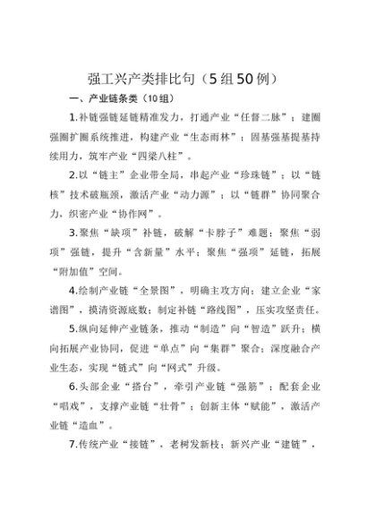/ 【七哥公文】2025年:强工兴产类排比句(5组50例)+更多免费公文+VX:QiGeGongWen2024