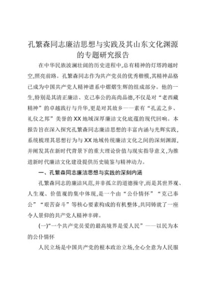 【七哥公文】2025年:孔繁森同志廉洁思想与实践及其山东文化渊源的专题研究报告+更多免费公文+VX:QiGeGongWen2024