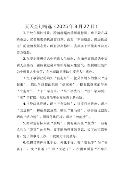 【七哥公文】2025年:天天金句精选(2025年8月27日)+更多免费公文+VX:QiGeGongWen2024