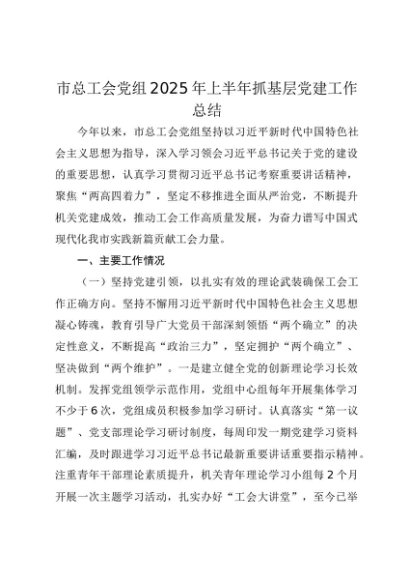 / 【七哥公文】2025年:市总工会党组2025年上半年抓基层党建工作总结+更多免费公文+VX:QiGeGongWen2024