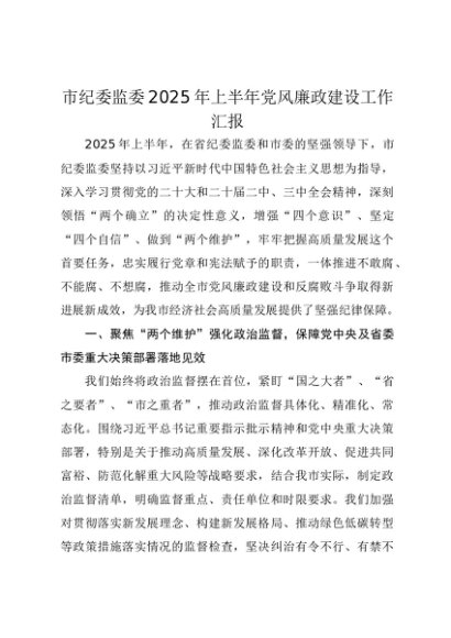 / 【七哥公文】2025年:市纪委监委2025年上半年党风廉政建设工作汇报+更多免费公文+VX:QiGeGongWen2024