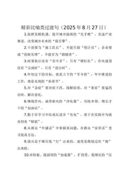 / 【七哥公文】2025年:精彩比喻类过渡句(2025年8月27日)+更多免费公文+VX:QiGeGongWen2024