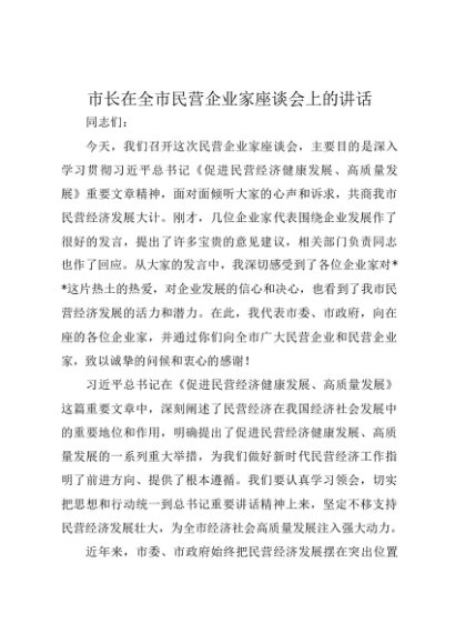 / 【七哥公文】2025年:市长在全市民营企业家座谈会上的讲话+更多免费公文+VX:QiGeGongWen2024