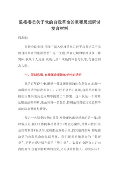 / 【七哥公文】2025年:监委委员关于党的自我革命的重要思想研讨发言材料+更多免费公文+VX:QiGeGongWen2024