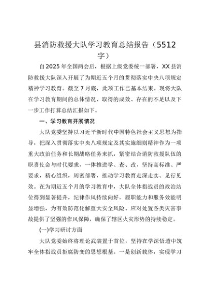 【七哥公文】2025年:县消防救援大队贯彻中央八项规定精神学习教育总结报告(5512字)+更多免费公文+VX:QiGeGongWen2024