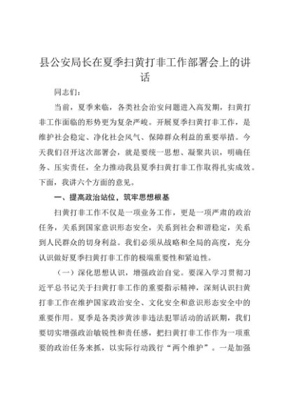 / 【七哥公文】2025年:县公安局长在夏季扫黄打非工作部署会上的讲话+更多免费公文+VX:QiGeGongWen2024
