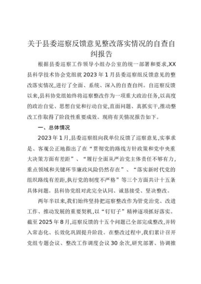 / 【七哥公文】2025年:关于县委巡察反馈意见整改落实情况的自查自纠报告+更多免费公文+VX:QiGeGongWen2024