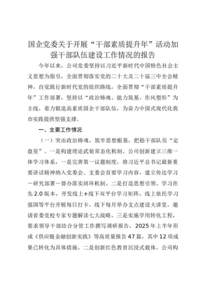 【七哥公文】2025年:国企党委关于开展“干部素质提升年”活动加强干部队伍建设工作情况的报告+更多免费公文+VX:QiGeGongWen2024