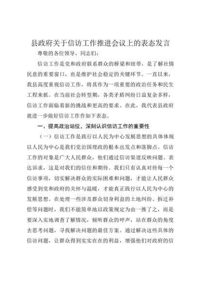 / 【七哥公文】2025年:县政府关于信访工作推进会议上的表态发言+更多免费公文+VX:QiGeGongWen2024