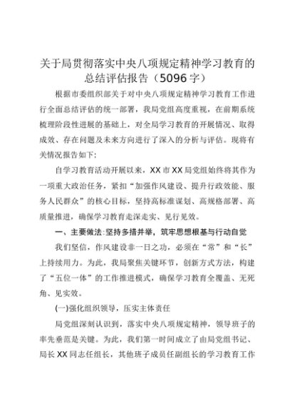 【七哥公文】2025年:关于局贯彻落实中央八项规定精神学习教育的总结评估报告(5096字)+更多免费公文+VX:QiGeGongWen2024