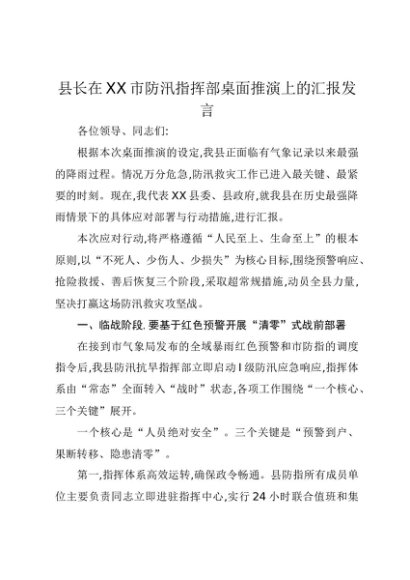 / 【七哥公文】2025年:县长在XX市防汛指挥部桌面推演上的汇报发言+更多免费公文+VX:QiGeGongWen2024