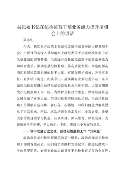 【七哥公文】2025年:县纪委书记在纪检监察干部业务能力提升培训会上的讲话+更多免费公文+VX:QiGeGongWen2024