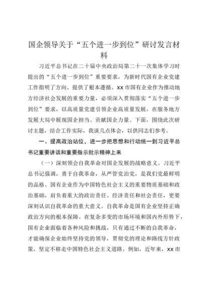 / 【七哥公文】2025年:国企领导关于“五个进一步到位”研讨发言材料+更多免费公文+VX:QiGeGongWen2024