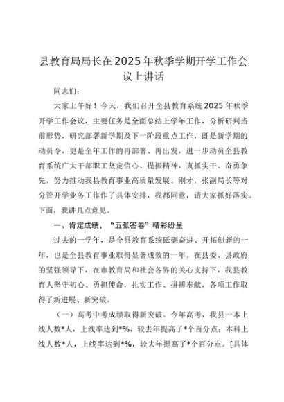 【七哥公文】2025年:县教育局局长在2025年秋季学期开学工作会议上讲话+更多免费公文+VX:QiGeGongWen2024