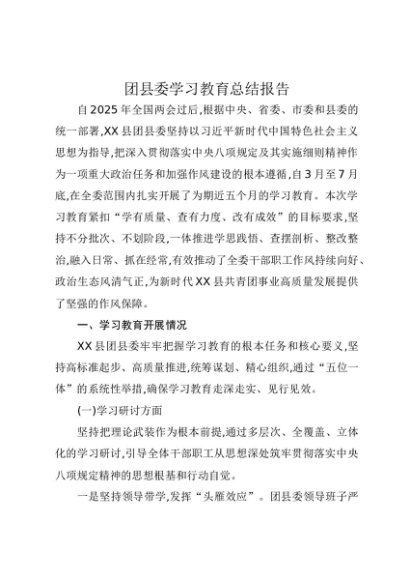 / 【七哥公文】2025年:团县委贯彻中央八项规定精神学习教育总结报告+更多免费公文+VX:QiGeGongWen2024