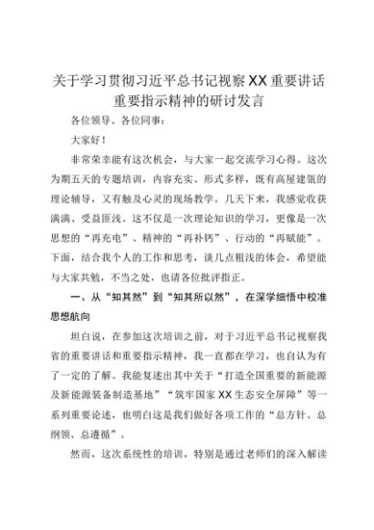 【七哥公文】2025年:关于学习贯彻习近平总书记视察XX重要讲话重要指示精神的研讨发言+更多免费公文+VX:QiGeGongWen2024