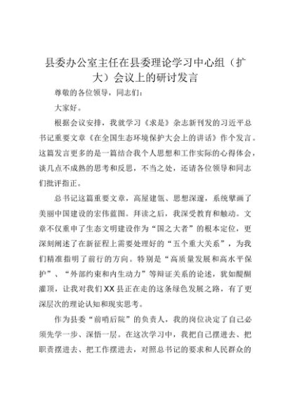 【七哥公文】2025年:县委办公室主任在县委理论学习中心组(扩大)会议上的研讨发言+更多免费公文+VX:QiGeGongWen2024