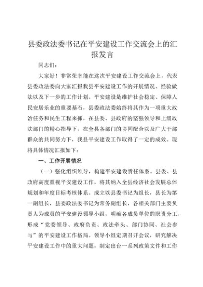 / 【七哥公文】2025年:县委政法委书记在平安建设工作交流会上的汇报发言+更多免费公文+VX:QiGeGongWen2024