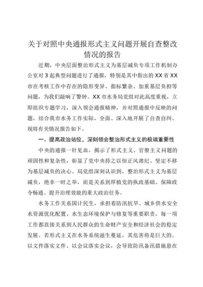 【七哥公文】2025年:关于对照中央通报形式主义问题开展自查整改情况的报告+更多免费公文+VX:QiGeGongWen2024