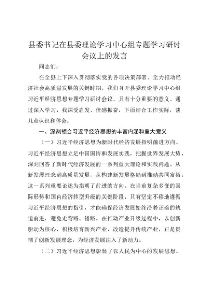 【七哥公文】2025年:县委书记在县委理论学习中心组专题学习研讨会议上的发言+更多免费公文+VX:QiGeGongWen2024