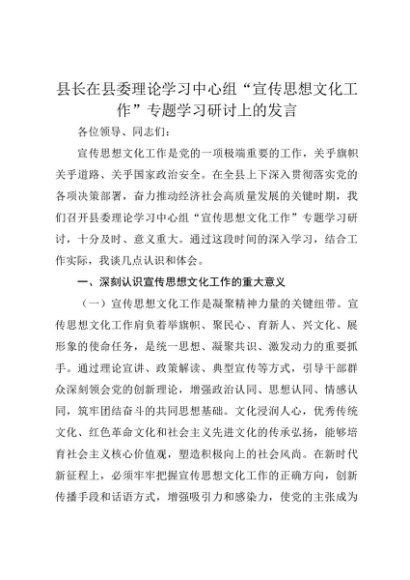 【七哥公文】2025年:县长在县委理论学习中心组“宣传思想文化工作”专题学习研讨上的发言+更多免费公文+VX:QiGeGongWen2024