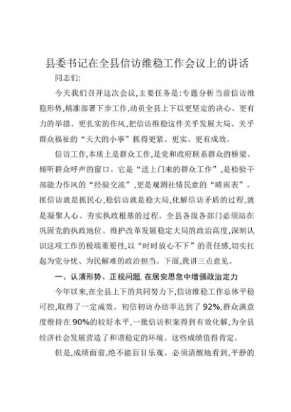 / 【七哥公文】2025年:县委书记在全县信访维稳工作会议上的讲话+更多免费公文+VX:QiGeGongWen2024