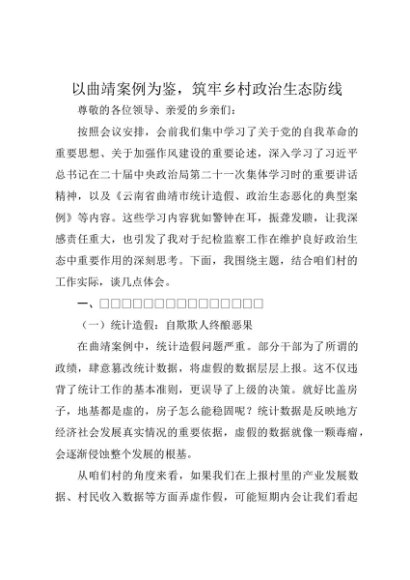 【七哥公文】2025年:村干部2025年云南省曲靖市统计造假、政治生态恶化典型案例交流研讨发言+更多免费公文+VX:QiGeGongWen2024