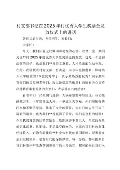 【七哥公文】2025年:村支部书记在2025年村优秀大学生奖励金发放仪式上的讲话+更多免费公文+VX:QiGeGongWen2024