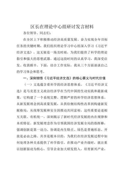 / 【七哥公文】2025年:区长在理论中心组研讨发言材料《习近平经济文选》+更多免费公文+VX:QiGeGongWen2024