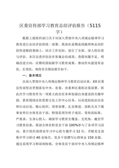 【七哥公文】2025年:区委宣传部贯彻落实中央八项规定精神学习教育总结评估报告(5115字)+更多免费公文+VX:QiGeGongWen2024