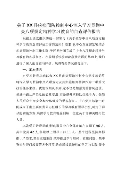 【七哥公文】2025年:关于XX县疾病预防控制中心深入学习贯彻中央八项规定精神学习教育的自查评估报告+更多免费公文+VX:QiGeGongWen2024