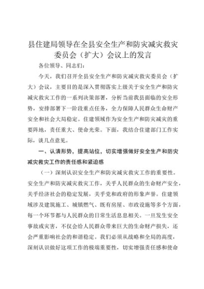 【七哥公文】2025年:县住建局领导在全县安全生产和防灾减灾救灾委员会(扩大)会议上的发言+更多免费公文+VX:QiGeGongWen2024