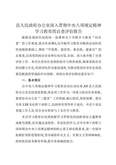 【七哥公文】2025年:县人民政府办公室深入贯彻中央八项规定精神学习教育的自查评估报告+更多免费公文+VX:QiGeGongWen2024