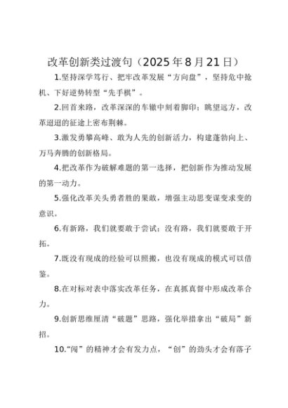 / 【七哥公文】2025年:改革创新类过渡句(2025年8月21日)+更多免费公文+VX:QiGeGongWen2024