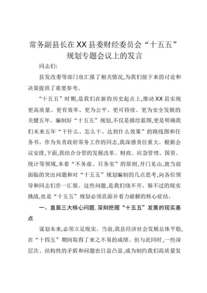 【七哥公文】2025年:常务副县长在XX县委财经委员会“十五五”规划专题会议上的发言+更多免费公文+VX:QiGeGongWen2024