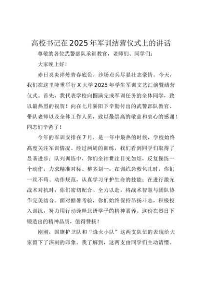 【七哥公文】2025年:高校书记在2025年军训结营仪式上的讲话+更多免费公文+VX:QiGeGongWen2024