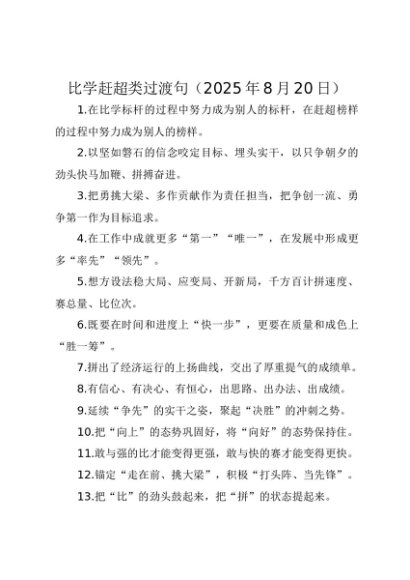 / 【七哥公文】2025年:比学赶超类过渡句(2025年8月20日)+更多免费公文+VX:QiGeGongWen2024