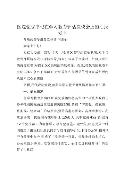 【七哥公文】2025年:医院党委书记在中央八项规定精神学习教育评估座谈会上的汇报发言+更多免费公文+VX:QiGeGongWen2024