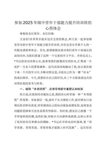 【七哥公文】2025年:参加2025年镇中青年干部能力提升培训班的心得体会+更多免费公文+VX:QiGeGongWen2024