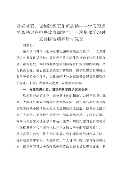 【七哥公文】2025年:对标对表,谋划组织工作新思路——学习习近平总书记在中央政治局第二十一次集体学习时重要讲话精神研讨发言+更多免费公文+VX:QiGeGongWen2024