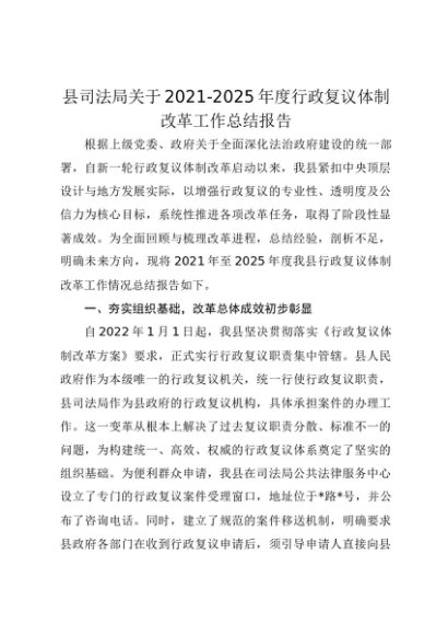 【七哥公文】2025年:县司法局关于2021-2025年度行政复议体制改革工作总结报告+更多免费公文+VX:QiGeGongWen2024
