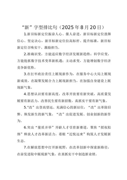 / 【七哥公文】2025年:“新”字型排比句(2025年8月20日)+更多免费公文+VX:QiGeGongWen2024