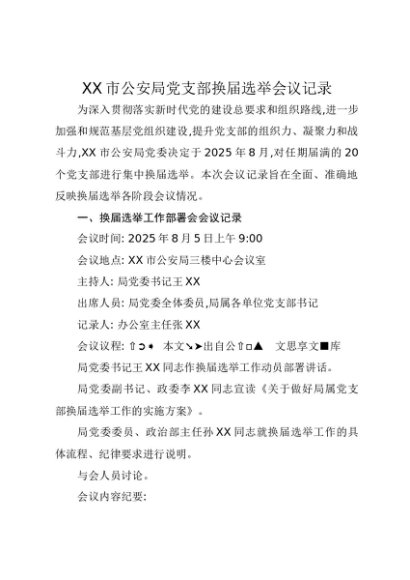 / 【七哥公文】2025年:XX市公安局党支部换届选举会议记录+更多免费公文+VX:QiGeGongWen2024