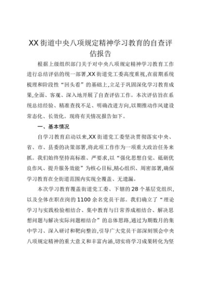 / 【七哥公文】2025年:XX街道中央八项规定精神学习教育的自查评估报告+更多免费公文+VX:QiGeGongWen2024