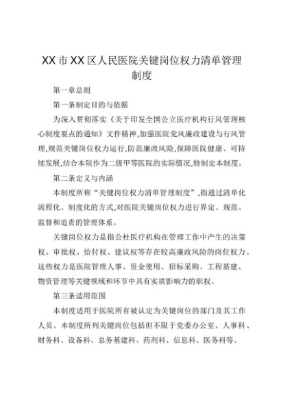 【七哥公文】2025年:XX市XX区人民医院关键岗位权力清单管理制度+更多免费公文+VX:QiGeGongWen2024