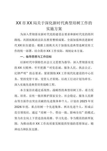 【七哥公文】2025年:XX市XX局关于深化新时代典型培树工作的实施方案+更多免费公文+VX:QiGeGongWen2024