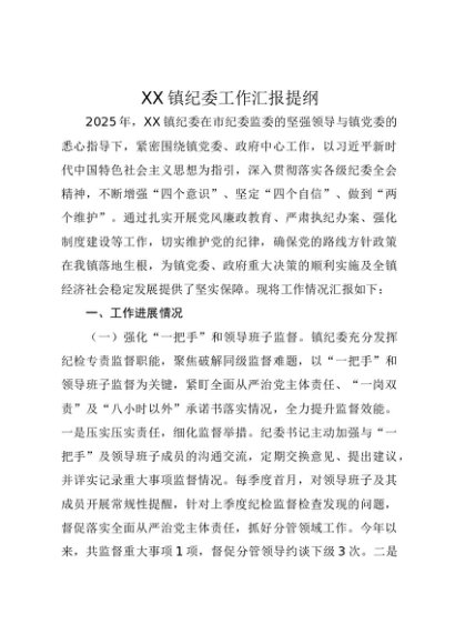 / 【七哥公文】2025年:XX镇纪委工作汇报提纲+更多免费公文+VX:QiGeGongWen2024