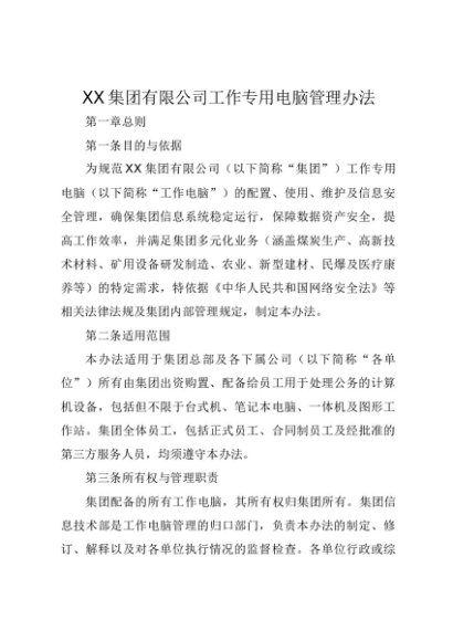 / 【七哥公文】2025年:XX集团有限公司工作专用电脑管理办法+更多免费公文+VX:QiGeGongWen2024
