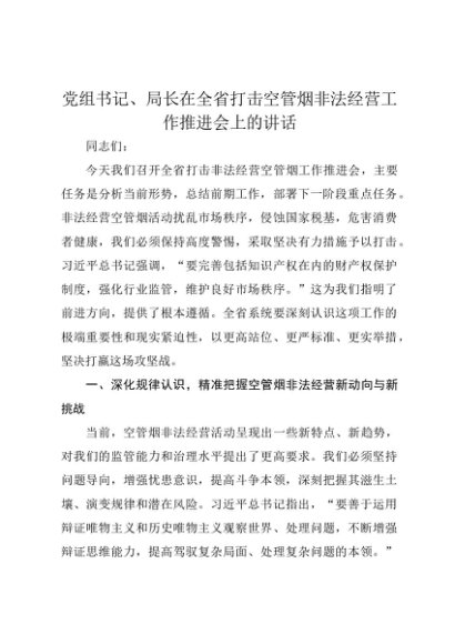 【七哥公文】2025年:党组书记、局长在全省打击空管烟非法经营工作推进会上的讲话+更多免费公文+VX:QiGeGongWen2024