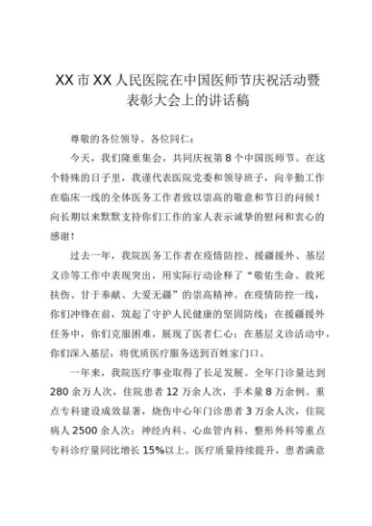 【七哥公文】2025年:XX市XX人民医院在中国医师节庆祝活动暨表彰大会上的讲话稿+更多免费公文+VX:QiGeGongWen2024